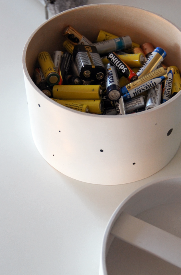 En tiennyt, ettei paristoja saisi säilyttää metallipurkissa! Siellä ne ovat lojuneet jo monta vuotta, purkki kun ei tunnu täyttyvän millään (ja ennen täyttymistä ei purkkia tule kiikutettyä keräyspisteelle). Taidanpa tarttua haasteeseen! :)